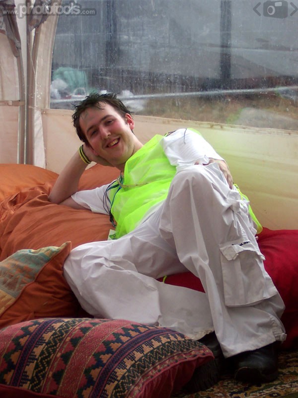 Martin relaxes seductively in the chillout tent