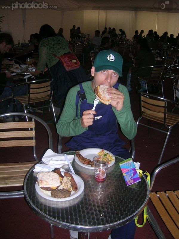 Luigi tucks into some tasty hospitality food!