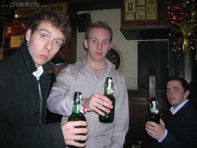 A nice manly pop-top bottle of grolsh... Shame about the pink face-paint really...